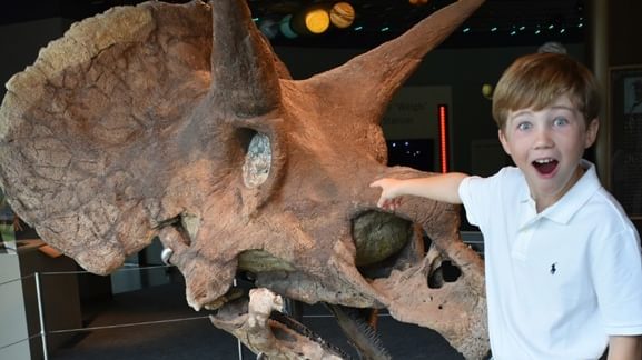 Along with related hands-on activities in collaboration with various community partners and fulldome shows in the Irene W. Pennington Planetarium, visitors will have the opportunity to engage with Paleontologist Mason Kirkland alongside LASM’s authentic Triceratops skull, “Jason.”