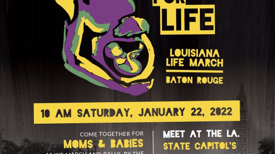 Due to weather, the event has been moved inside St. Joseph’s Cathedral. Space is Limited. 412 North Street Baton Rouge, LA 70802. While we are not marching as an organized group, participants are free to independently march to the Capitol on their own using the sidewalk. Thank you for your understanding, and see you soon!