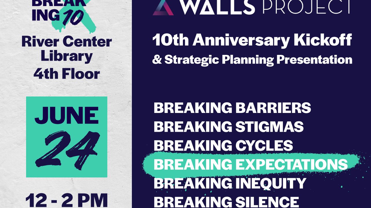 Join Walls Project at the River Center Branch Library, unveiling its 3-year strategic plan and kick-off for the 10th Anniversary series of events.