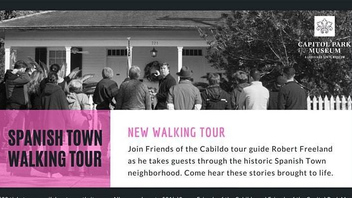 Spanish Town Tour 2:30 PM to 3:45 PM. $20 General ticket. Join Tour Guide, Robert Freeland, as he debuts a NEW tour of the Historic Spanish Town neighborhood. Founded by Spanish Canary Island settlers in 1805, Spanish Town is Baton Rouge’s oldest neighborhood. Hear history brought to life. Space is limited. Tickets are available on Eventbrite.com. Patrons are advised to dress comfortably.