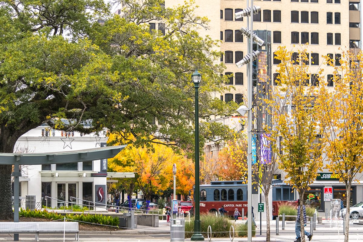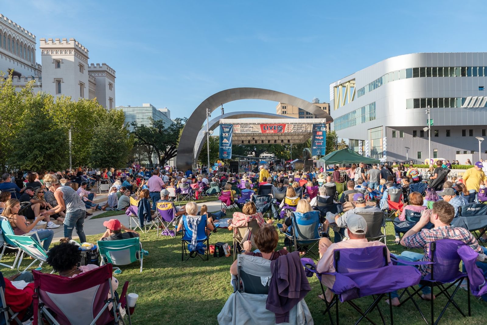 North Boulevard Town Square is a spectacular greenspace development that has transformed the disjointed area between North Boulevard and River Road into a lively downtown center where the city’s cultural and civic attractions come together for all to enjoy. Town Square has now become the city’s premier social gathering place — featuring more than an acre of open green space and innovative water features that help cool the landscape and a multitude of high-tech amenities to entertain visitors. The various components of the space include an elevated seating area with movable chairs and tables, a fountain with splash-pad, the Beacon broadcast screen and sound system, and the Galvez Plaza lawn and stage underneath the unmistakable Crest sculpture. North Boulevard Town Square can be reserved for concerts, outdoor dinners, press conferences, and much more.